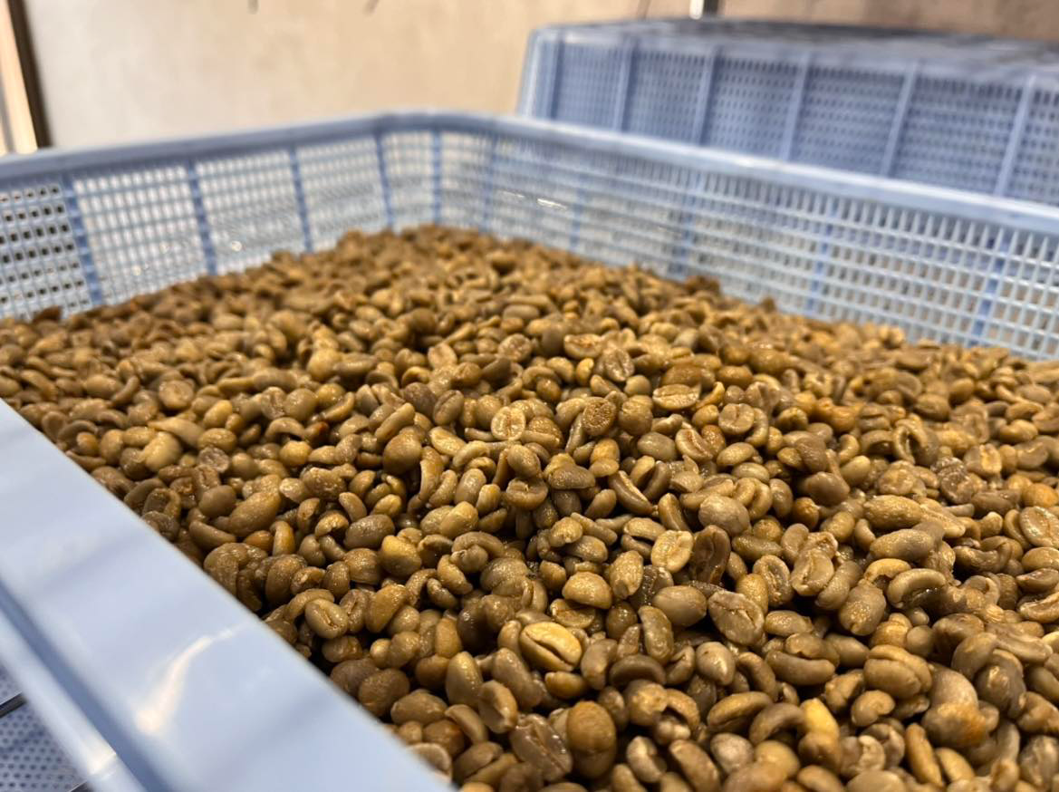 ▲50℃洗いをした生豆たちは、イキイキ、つやつやしています。